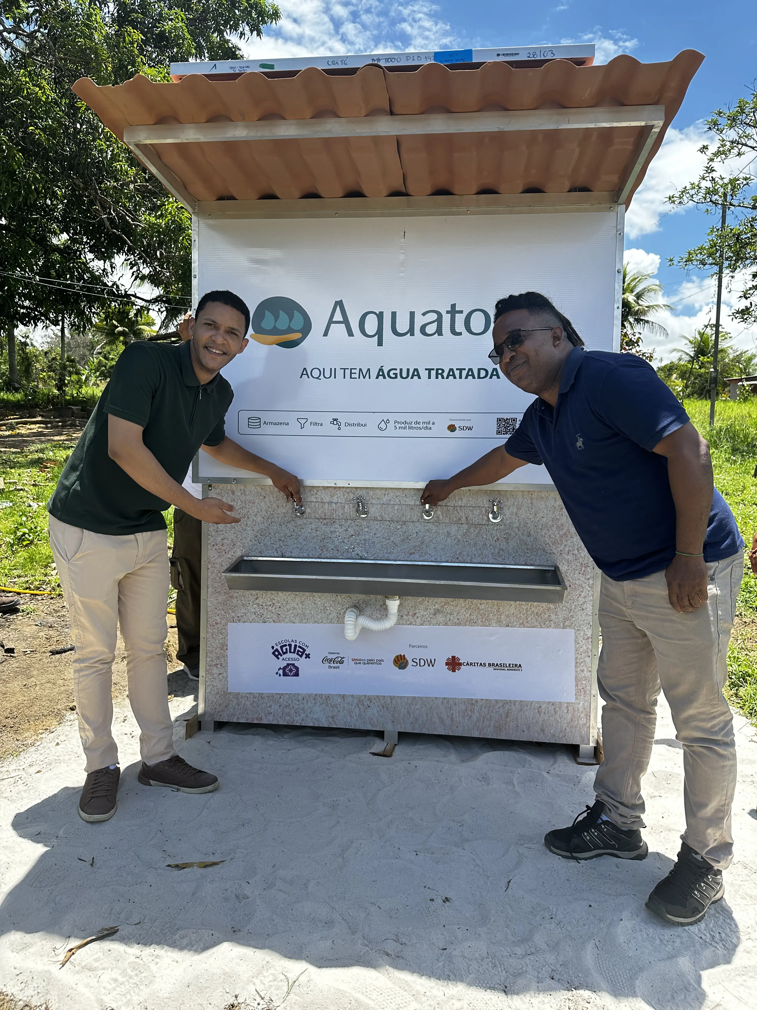 A SDW For All e Sistema Solar Coca-Cola estão levando acesso à água tratada por meio das tecnologias Aquatorre, Totem e Aquafiltro que juntas irão beneficiar + de 8 mil pessoas nos municípios: Vitória da Conquista, Simões Filho, Ruy Barbosa, Macajuba, Lajedinho, Ipecaetá e Conceição do Almeida.